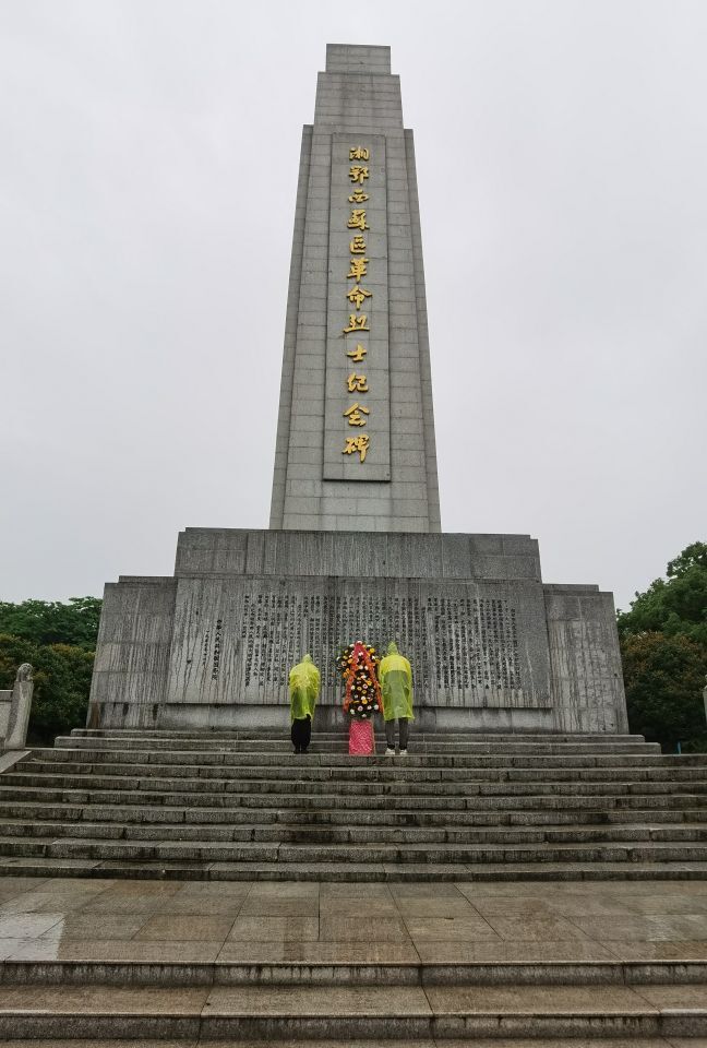 上午9点,全体人员参观了湘鄂西苏区革命烈士陵园。湘鄂西苏区革命烈士陵园,简称烈士陵园,亦称湘鄂西苏区革命烈土纪念馆,座落在洪湖市城区南郊,离市中心约1.5公里。占地面积40公顷。1978年10月为湖北省委为纪念贺龙、周逸群、段德昌等老一辈无产阶级革命家和在湘鄂西苏区牺牲的革命烈土决定建园,1984年11月10日落成。在纪念馆中,陈列着革命烈士们的生平。教师们瞻仰了烈士遗像和大量图片实物,通过一件件史实、一张张图片、一件件实物,深切缅怀革命先烈。