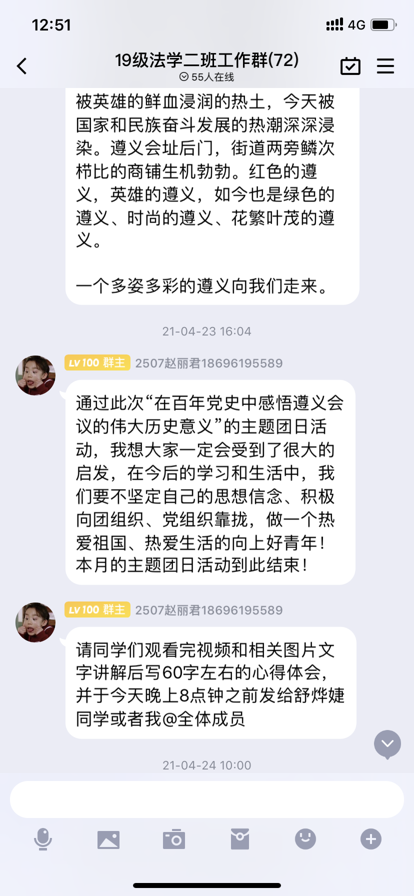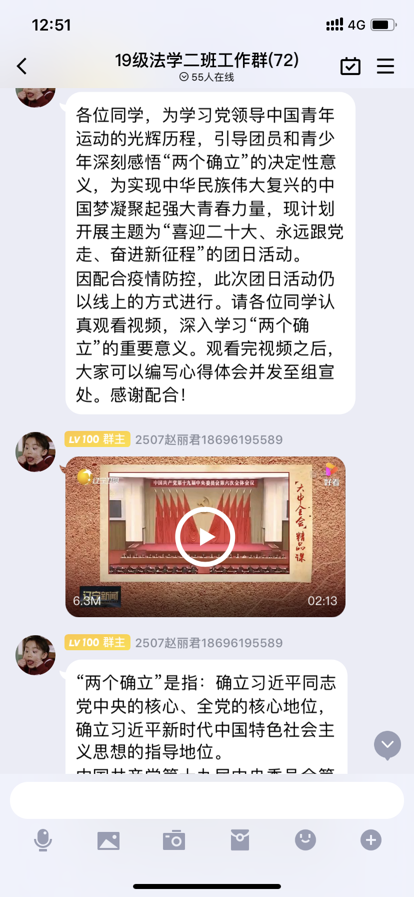 19级法学二班团支部在上级团委领导下,积极开展三会两制一课工作,按时召开团支部大会和团小组会,积极开展各项团日活动,包含“建国七十周年”、“我爱我的祖国”、“纪念红军长征胜利85周年”等主题团日活动,同时19级法学二班同学在学习上,也丝毫不放松,大一、大二学年荣获一等奖学金2人次、二等奖学金3人次、三等奖学金32人次。