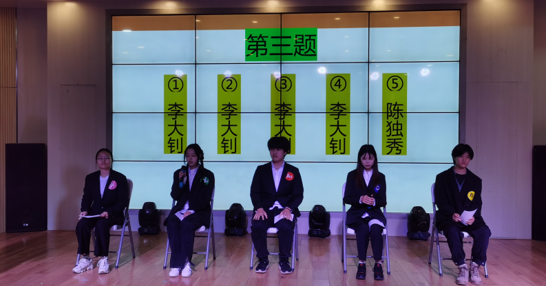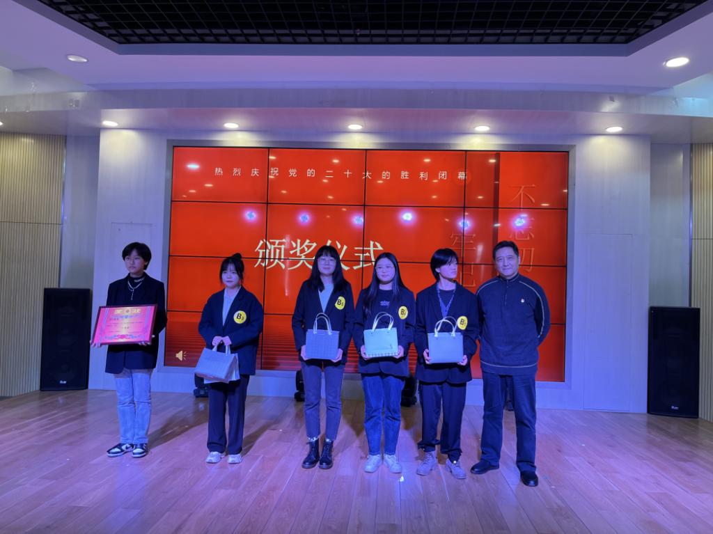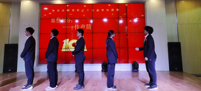在游戏中寓教于乐,同学们通过对二十大相关词汇的解答、描述以及演绎,加深了对相关精神的理解,推进二十大精神入脑又入心,争做时代新人。伴随着诗朗诵《二十大之歌》,游戏逐渐进入尾声,经过数轮角逐累计得分,本次知识竞赛获得一等奖的队伍是学习强国队,获得二等奖是强国有我队,获得三等奖是不忘初心队,获得优秀奖分别是心中有党队和青年先锋队。