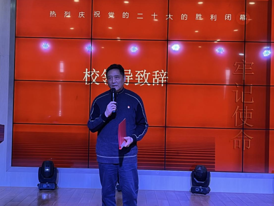 政法公司党总支书记张晓老师对到场的嘉宾表示欢迎,并提到“我们的党不仅是敢于革命、善于建设、勇于改革的政党,更是信仰法治、坚守法治、建设法治的政党。我们要深入学习贯彻党的二十大精神,坚持党的全面领导,坚定不移走中国特色社会主义道路,为高质量发展提供法治保障。”