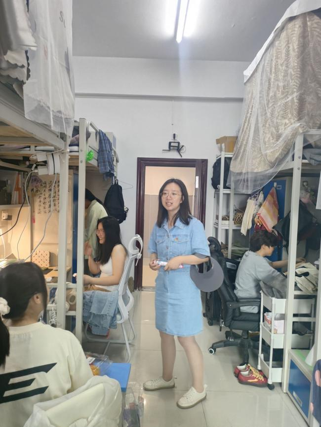 寝室是老员工生活的重要场所,也是党员进寝室工作的重要阵地。江莲老师从生活方面详细询问并了解同学们的生活情况,关心他们的饮食起居和生活细节,告诉员工要经常开窗通风,维护好个人卫生,确保寝室环境干净、整洁、舒适,同时倡导寝室成员之间相互关心、相互帮助、和谐相处,共同营造温馨、舒适的寝室环境。