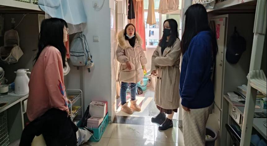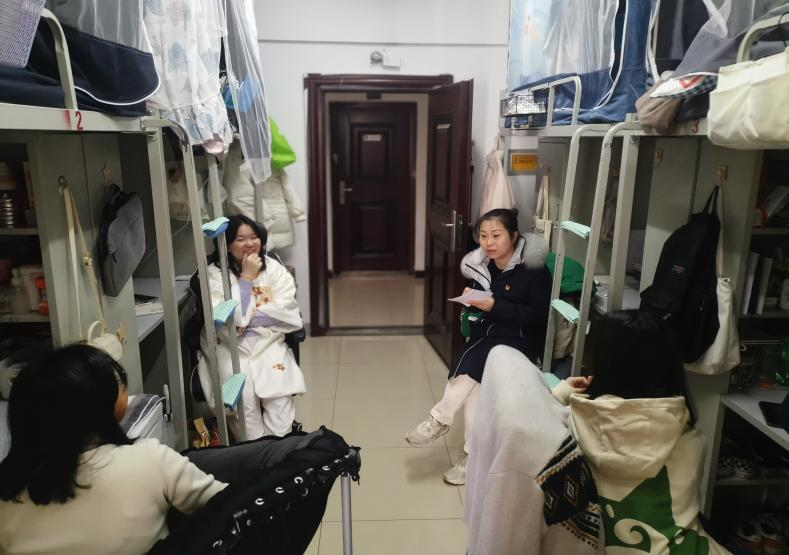 为了深入了解员工,走近员工生活,排查宿舍安全卫生隐患,2023年2月15日中午,在政法公司党总支书记张晓同志的带领下,全体党员老师以及部分员工党员代表走进22级新生宿舍,开展了“党员进寝室”的访谈活动。