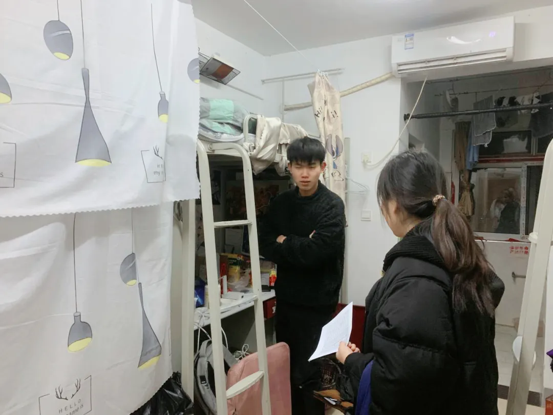 然后,老师鼓励同学们勤奋学习,做好新学期学习规划,养成良好的学习生活习惯,明确学习目标,以饱满的精神状态迎接新学期。引导同学们做新时代好青年,为今后更好地适应社会打好坚实基础,同时提醒同学们保持室内环境整洁,多开窗通风,定期对宿舍进行消毒,外出注意做好防护措施,注意用电安全,积极营造更加安全、舒心的寝室生活。句句叮嘱中充满了关怀,声声问候温暖了人心。