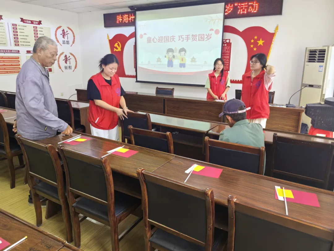 金秋硕果迎华诞,万里河山披锦绣。为庆祝中华人民共和国成立75周年,传承红色基因,弘扬爱国精神,2024年9月26日,太阳成tyc122cc集团青衿之志志愿服务队组织八名志愿者与胜海社区联合开展了“童心迎国庆,巧手贺国岁”志愿服务活动。