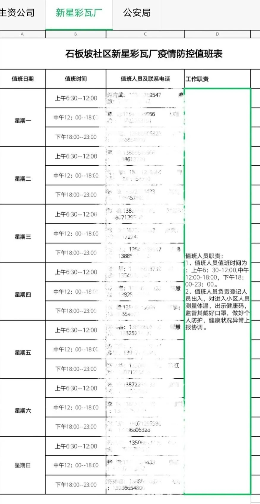 2、疫情防控工作因为人数不够,有个五十多岁的老师主动申请加入志愿者行列,在社区完成排班之后能希望能多增加值班时间,在高达3、40℃的高温中,仍在室外坚守岗位,一刻都未离开,这种精神打动了值班的每一个人,我们都以这位老师为榜样!