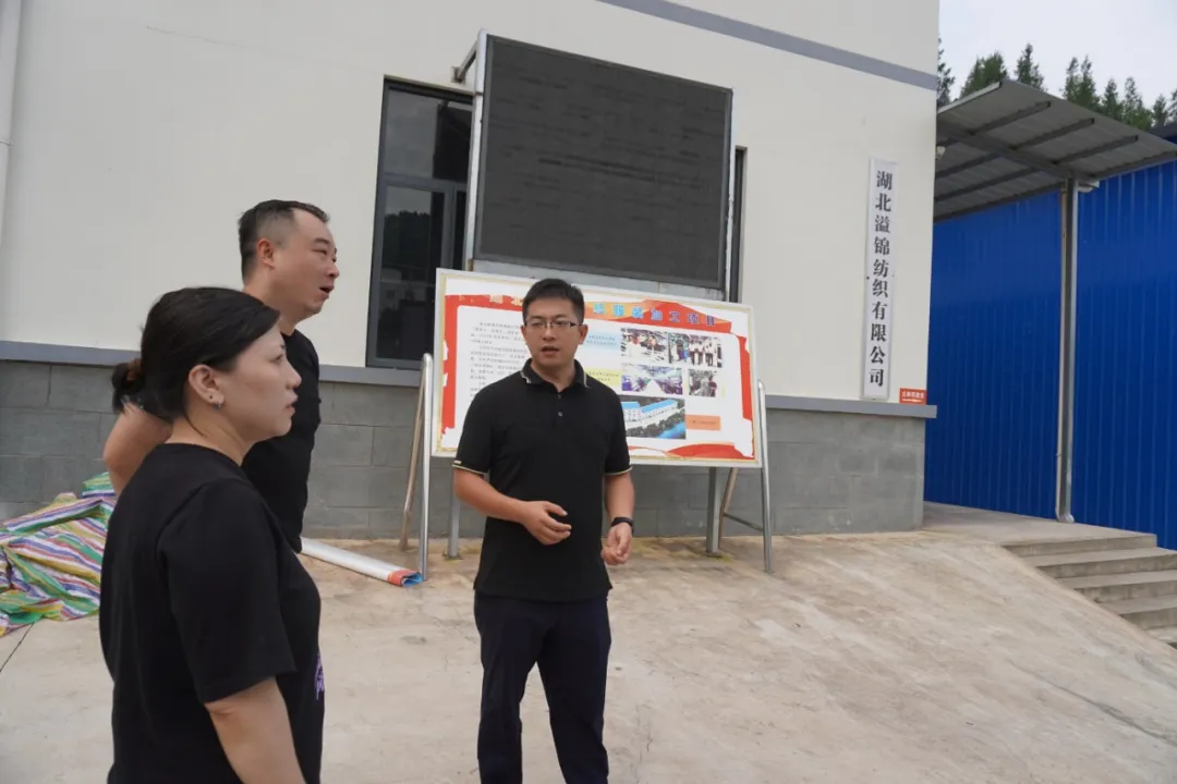 随后,在侯江华书记的带领下,刘超处长一行来到了湖北溢锦纺织有限公司,了解沿渡河镇历史渊源、人文发展、经济建设等情况。该公司为沿渡河镇党委、政府招商引资入驻,为实现当地易迁户“搬得出、稳得住、能致富”的目标,自投产以来,已为社区易迁安置小区及周边农户提供就业岗位100余个,切实解决当地就业问题。