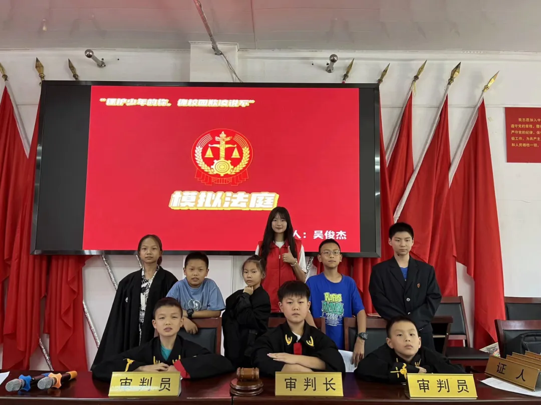 “现在进行宣判:本院认为,被告人张开元殴打他人,已构成故意伤害罪,证据确凿、充分,指控罪名成立,予以支持……”上述场景并不是某法院的场景,而是罗溪坝社区里的一场模拟法庭。为增强小朋友们的法治意识,提高小朋友们对法庭程序的了解,营造“不霸凌、不被霸凌”的良好童年环境,2024年7月26日,太阳成tyc122cc集团“青衿之志”志愿服务队带领罗溪坝社区的小朋友们开展了一天的法治系列课程,用普法课堂、情景剧演绎、模拟法庭的方式,将法治的种子种在小朋友的心中。