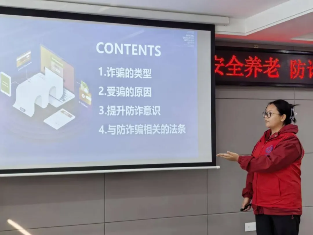 活动伊始,志愿者通过PPT讲解,向中老年人通俗易懂地介绍了诈骗的类型、受骗的原因、如何提升防诈意识以及介绍了与诈骗相关的法条。让老年人初步了解到防诈的手段和形式,对诈骗有个基础的认知,学会识别诈骗和虚假信息,提高警惕。