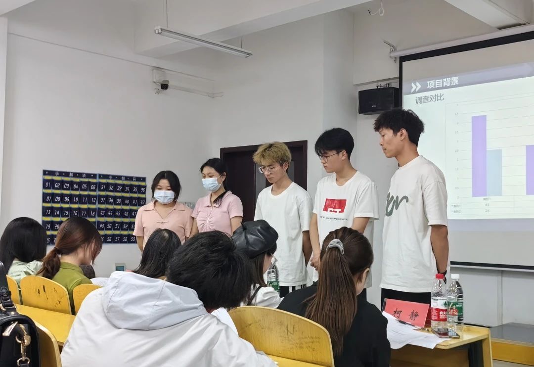 各参赛项目队伍成员依次上台发言,分别从项目研究背景、项目概述、项目研究规划、项目发展前景等方面进行了项目介绍演讲。在参赛团队进行完项目介绍演讲后,在场评委老师们对各项目逐一点评,指出了项目中的亮点与不足,并给出了宝贵建议。