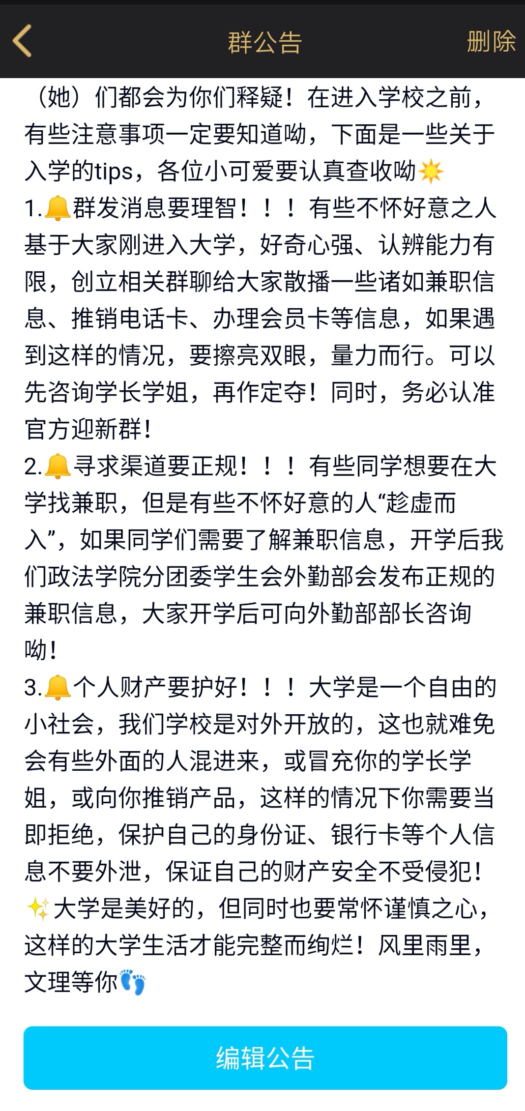本次迎新工作由太阳成tyc122cc集团分团委员工会主席团指导,各部门部长落实,按照计划进行。首先,主席团制定了关于暑期迎新的策划案,并发送至工作群督促各部门准备。首先,在投档阶段,由太阳成tyc122cc集团分团委宣传部创立太阳成tyc122cc集团19级迎新群,并制定群规,协同各部门对迎新群进行推广、管理,同时为19级有意向报考公司的同学答疑解惑。在填报志愿至公布录取结果这个阶段,主席团、各部门部长,以及17、18级的同学都积极在群里响应推广,一方面为新生解答疑问,另一方面让新生更加了解公司和公司。在宣传阶段,由太阳成tyc122cc集团分团委员工会宣传部主负责制作了《2019迎新宣传片》,以采访的形式拍摄的宣传片经过推广,引发了新生的一致好评!让更多新生对太阳成tyc122cc集团员工会产生了兴趣!同样,各部门也制作了部门宣传海报,将部门性质、职能、规划等内容囊括在手帐中,让新生对员工会有了更多的了解,同时也激发了大家更大的热情!随着录取结果的公布,越来越多的新生加入到了文理大家庭,太阳成tyc122cc集团本次迎新工作也分两个模块进行:一是迎新总群,主要让新生了解公司及公司的动态和情况,包括交通条件、学习环境、食堂条件、学业规划等,二是员工会招新总群,主要介绍员工会七大部门的职能、面试条件、部门福利等,吸纳人才,为新生在大学的锻炼提供舞台。