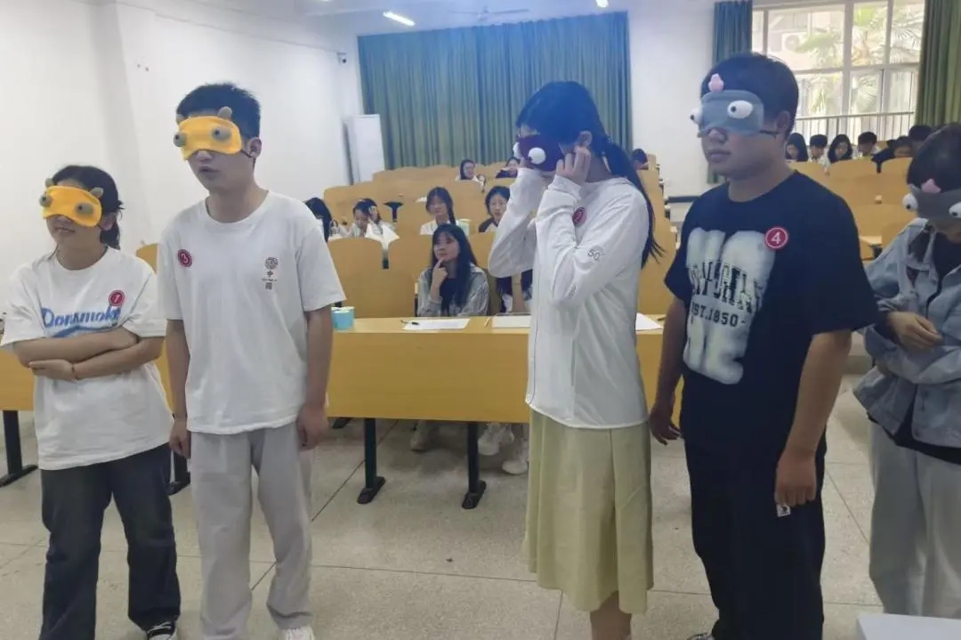 2024年4月25日中午,在教学楼5-123和5-124开展决赛心理趣味小游戏。政法心协精心准备了五个游戏,有“蒙眼取水”、“盲人摸号”、“记忆考验”、“你划我猜”、“乱词接龙”。首先由各个队伍的队长通过抽签的方式随机抽取两个游戏,在每个游戏开始前,再对抽取到这个游戏的队伍的比赛顺序进行抽签,各队伍按顺序上场进行比赛,并对游戏进行计时,采取积分制。