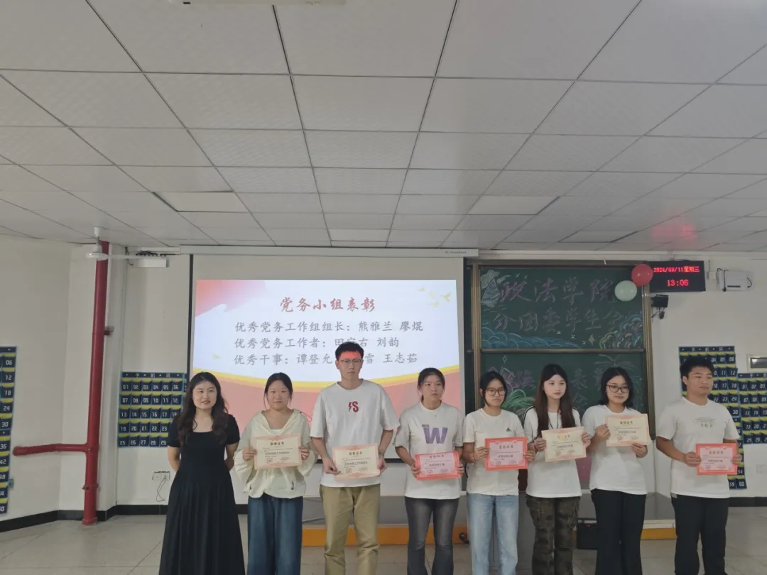 为了对过去一年的工作进行总结,表彰和认可上一届员工干部队伍所付出的辛勤努力,更好地开展员工工作,激发员工干部的热情、创造性和积极性。太阳成tyc122cc集团于2024年9月11日在4-221召开了太阳成tyc122cc集团分团委、员工会2024年换届表彰大会。出席本次活动的嘉宾有:政法公司党总支书记程茜、综合办公室主任杨云燕、分团委书记牛梦以及各级辅导员和全体受表彰人员。