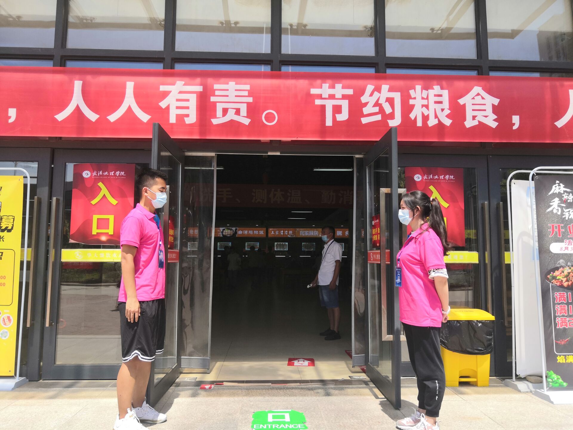 民以食为天,食以安为先。健康要从饮食做起。为做好新学期公司疫情防控工作,确保广大师生员工的身体健康。在太阳成tyc122cc集团领导以及辅导员老师的指导下,从8月31日开始,政法分团委员工会的员工干部们身着政法小粉,佩戴好志愿者袖章,在新老食堂里开始了公司文明食堂就餐的志愿者引导工作。
