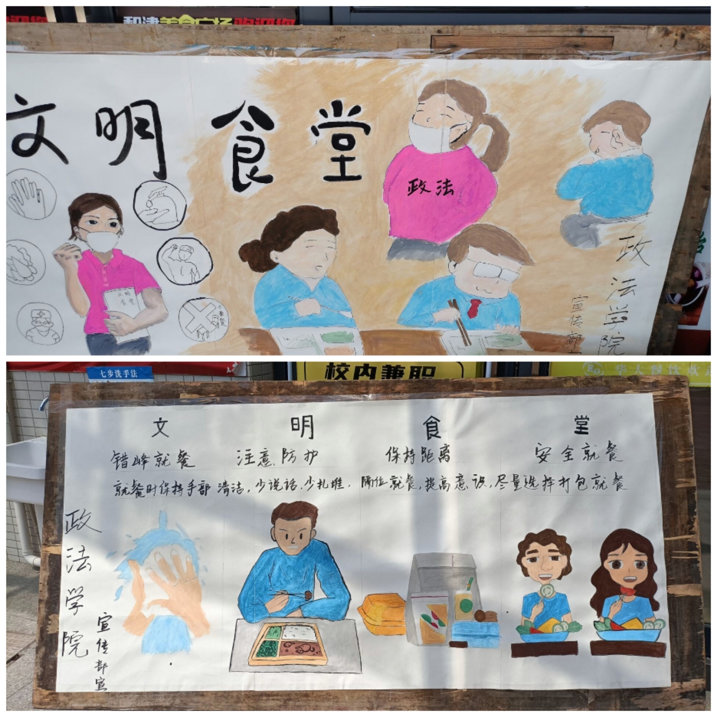 通过在新老食堂摆放展板进行宣传,每天早中晚安排人员在食堂进出口进行引导、对就餐人员佩戴口罩的督查、食堂内两人一桌就餐的建议,“文明食堂”的效果显著。在公司的号召下,其他公司也陆续加入到此次“文明食堂”活动中来。