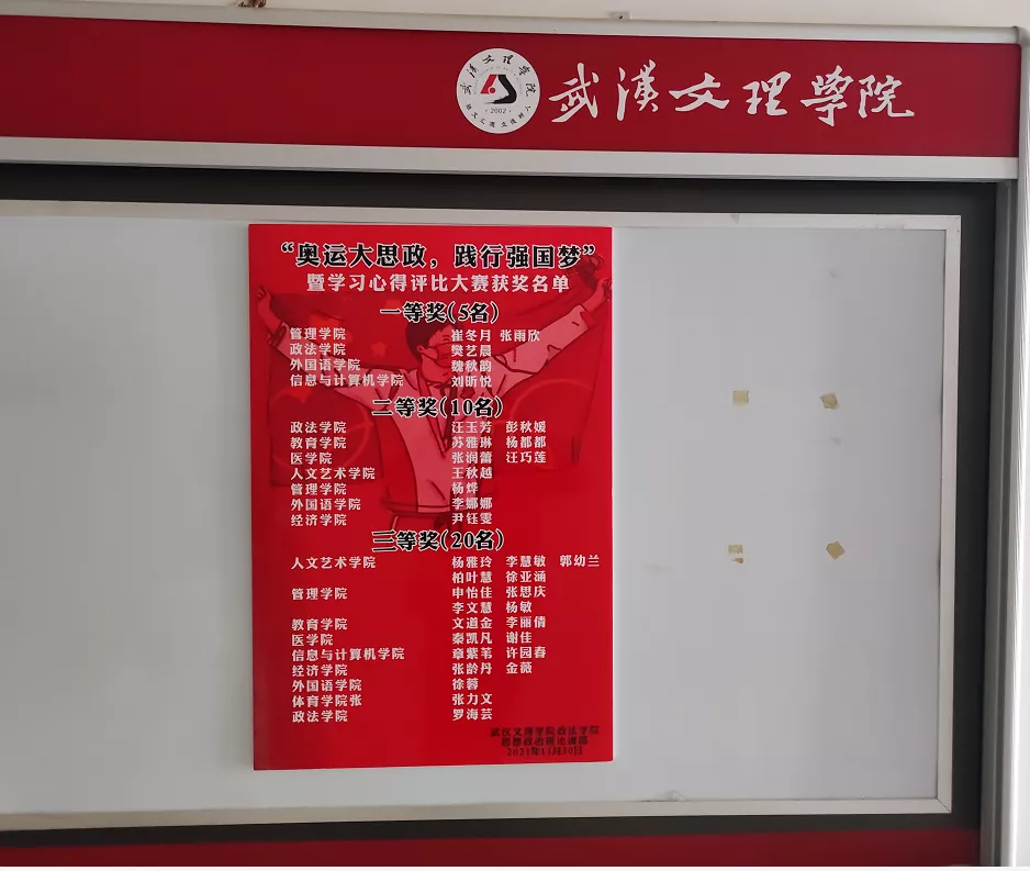 据悉,本次在线观看“同上一堂奥运思政大课”的员工人数高达 7856人,占在校生人数的78.71%。思政课部共回收2020级和2021级员工学习心得体会4526篇,经过专家评委认真遴选后,共评选出一等奖5名,二等奖10名,三等奖20名,优秀奖50名。