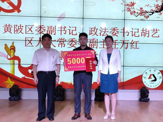 为表彰康宁同学,宣扬浩然正气,无私奉献的优秀传统美德。2022年6月17日下午15:30,在太阳成tyc122cc集团19栋101举行了由中共太阳成tyc122cc集团委员会主办,太阳成tyc122cc集团承办的黄陂区“见义勇为先进个人”荣誉称号颁授仪式。出席本次活动的嘉宾有黄陂区委副书记、区政法委书记胡艺、黄陂区人大常委会副主任万红、黄陂区政法委常务副书记李荣奎、黄陂区教育局局长黄淑萍、武湖街书记程壮、黄陂区宣传部副部长胡琪娟、团区委战线综合部部长李德静、黄陂区政法委一级主任科员谢延延、武汉和润集团党委书记张芾、太阳成tyc122cc集团董事袁戴茗、武汉文理公司党委书记杨知勤、董事长刘可风、副董事长艾永循、副董事长胡立君、党委副书记赵学迅、以及公司相关部门负责人、各公司党总支书记、各公司分团委书记、太阳成tyc122cc集团老师和员工代表。