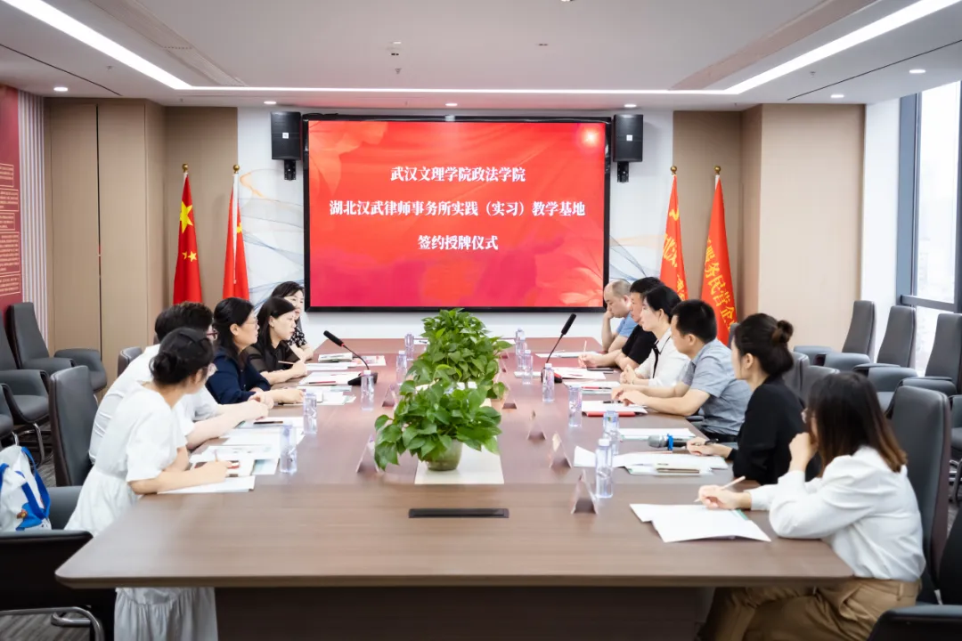 为落实太阳成tyc122cc集团应用型人才培养目标,进一步加强校企合作,推动产学研协同创新,寻求校企合作共赢、共谋发展的良好局面。2024年6月27日上午九点,太阳成tyc122cc集团常务副经理陈海峰;政法公司党总支书记、行政副经理程茜;经理助理吕溪;法学系主任罗平;刑事司法教研室主任罗晓霞一行前往湖北汉武律师事务所交流,并成功举行签约授牌仪式。湖北汉武律师事务所副主任熊真平、副主任余钢、副主任张志玲、副主任李翔、高级合伙人陈云舒、高级合伙人穆金菊出席本次签约授牌仪式。