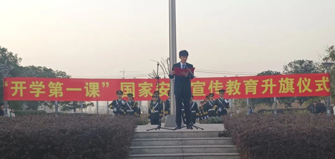 紧接着是2021级法学6班周宇同学做国旗下讲话,他站在国旗下,以青春之力,践行当代老员工对国家安全的认识;以知识的力量身体力行地参与到国家安全教育的行动中。向大家展示着青年一代的我们,有责任,有担当。呼吁我们将中华民族命运与国家关系紧密相连,树立国家安全观;提高国家安全意识;强化国家安全责任,为国家贡献出我们青年学子的爱国之心