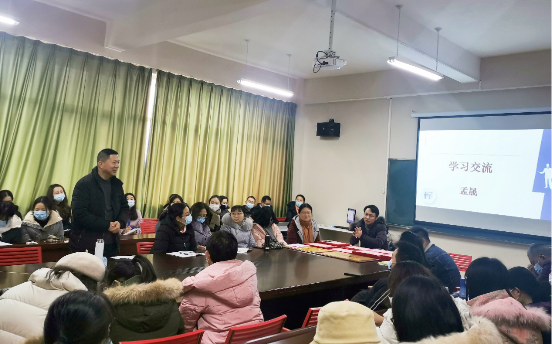 最后,由孟晟老师发言,作为优秀班主任代表者,孟晟老师发表了自己的员工工作心得,他用三个字和一个理念做出了总结,“放、管、服”和与学工老师协同合作。为在座的教职工提供了很好的经验借鉴。