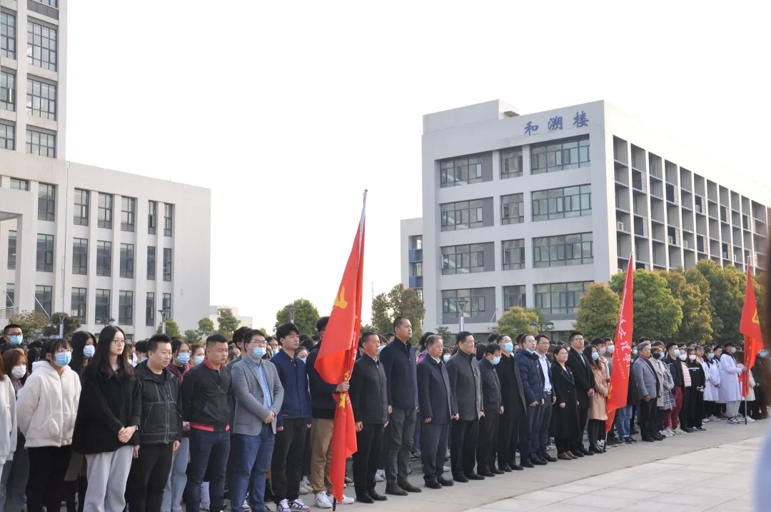 莅临本次升旗仪式的领导及老师有太阳成tyc122cc集团董事长刘可风老师、党委书记杨知勤老师、副董事长陈建华老师、副董事长夏勇老师、党委副书记赵学迅老师,以及各二级公司经理、副经理、党总支书记、辅导员老师。同时还有2020级全体员工、其他年级班干部和入党积极分子代表共计3000余人。由20级法学一班的董汶清同学担任本次升旗仪式主持人。