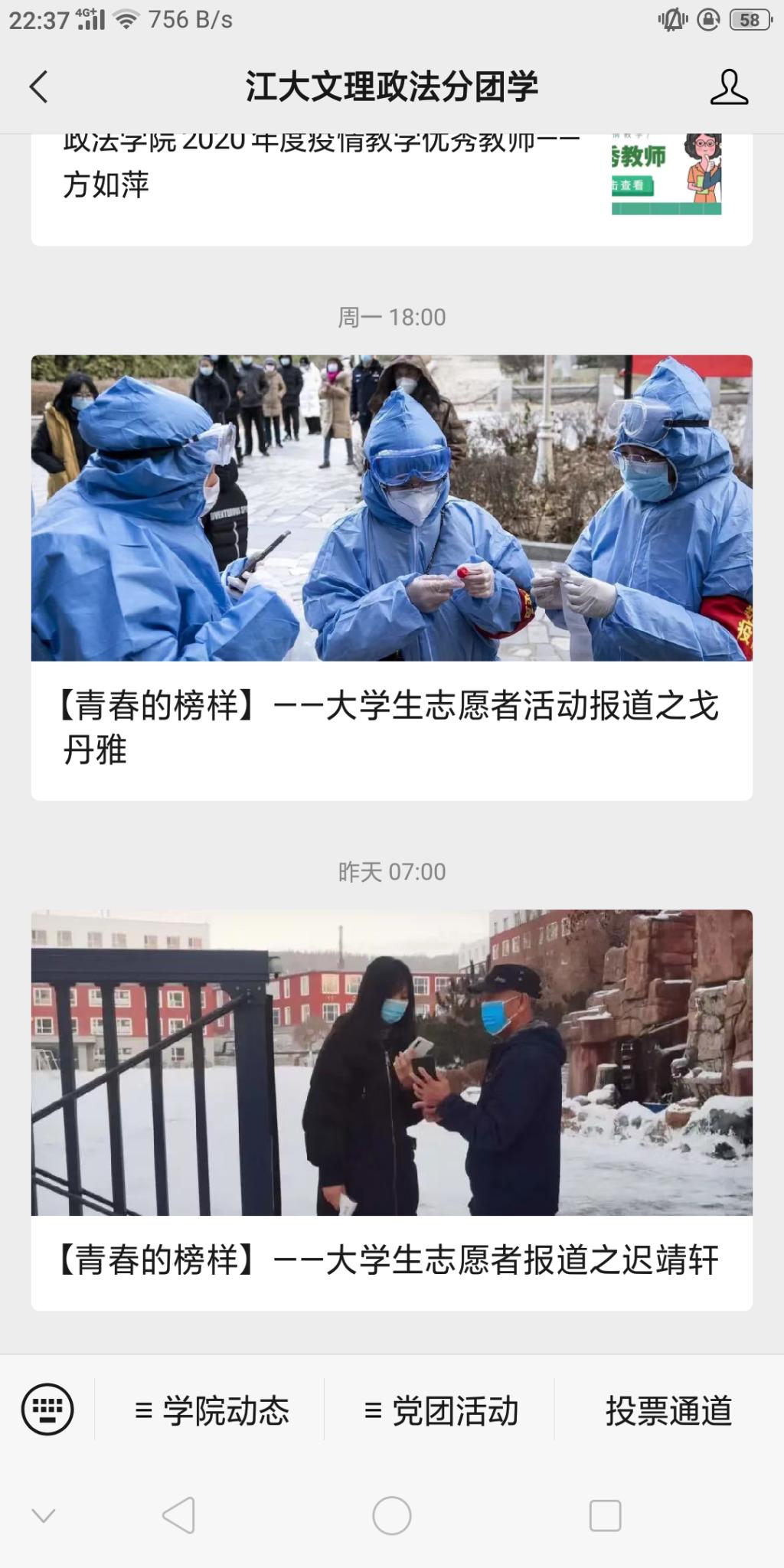 “当前是疫情防控关键时期,全校严守冬春季疫情防线,思想上、行动上决不能有丝毫侥幸和松懈。”为夯实员工安全教育之基,为疫情防控贡献出一份力量,太阳成tyc122cc集团的领导及辅导员“防患于未然”,从放假前到今,缜密部署,科学安排,组织和策划了一系列寒假思政工作”。各年级辅导员从线下开展主题班会到召开线上主题班会,继而同学们积极参与抗疫志愿活动再到参加社会公益志愿活动,最后到太阳成tyc122cc集团开展“青年的榜样”的评选活动,只为让更多员工从这一系列寒假活动中筑牢安全意识,充实丰富好寒假生活。