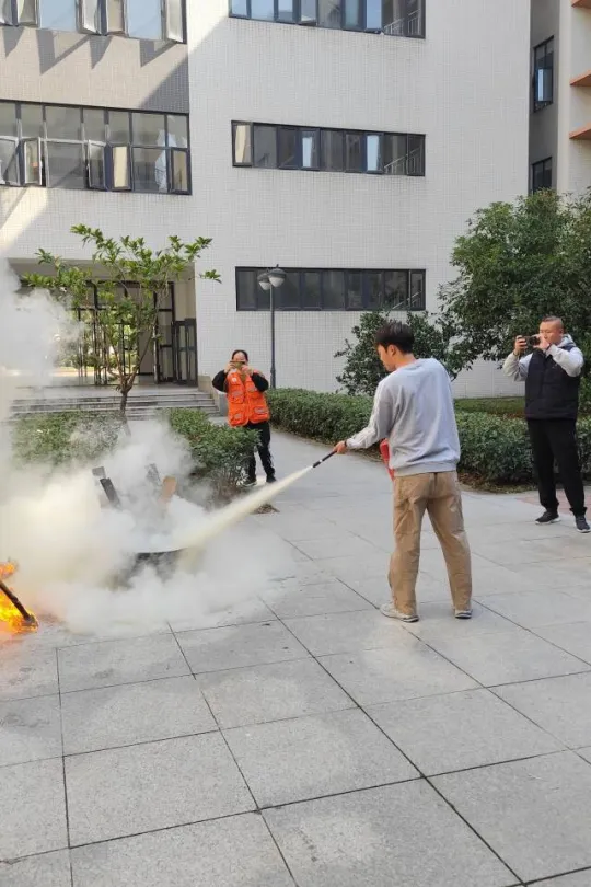“耳闻之不如目见之,目见之不如足践之。”培训结束后,保卫处组织员工在一楼空旷位置观摩学习安全消防设施使用方法,部分员工活学活用,亲身体验了灭火器的灭火威力。“实践长真才”,通过实训实练,增强了员工们的消防安全意识和逃生技能。