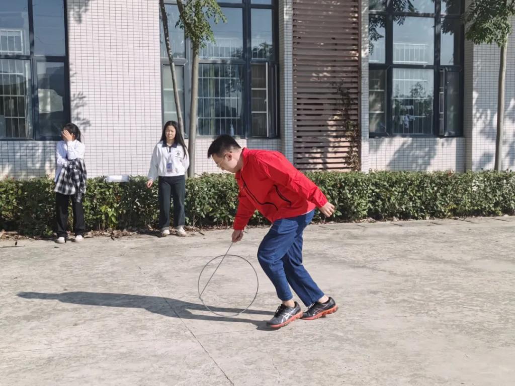 随后,是活力四射的滚铁环接力,一圈圈细细的铁环,一截截短短的铁棍,在教师们手中快速传递。激情的飞扬,速度的冲刺,团队的协作,成就了集体的成功;