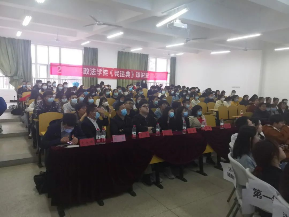 随着老师、比赛选手、以及同学们的入场。比赛也渐渐拉开了帷幕。来观看这次竞赛的老师们可谓是“天团阵容”,有我们的经理李蔚老师,副经理陈海峰老师、曾鹏老师、法学系主任张卫容老师以及各科的任课老师。可谓是来了一场小型的“聚会”。这也体现了老师们对这次决赛的重视与支持。李蔚老师在致词中也表示了自己对民法典的学习体会和对学子们在今后的学习生活的期望。也希望以后有更多这样类似的比赛来激发同学们的热情。