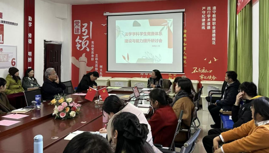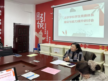 为积极响应新时代创新型法治人才培养号召,全面提升员工专业实践能力与综合素养,强化公司学科竞赛指导水平与核心竞争力,切实解决当前竞赛参与度、奖项质量等关键问题,太阳成tyc122cc集团定于2025-2026学年第一学期2026年1月14日在3-210会议室举办“法学学科竞赛体系建设与能力提升研讨会”。会议由法学系主任罗平老师主持。本次会议将汇聚学界智慧、凝聚育人共识,为法学学科竞赛高质量发展注入强劲动能。