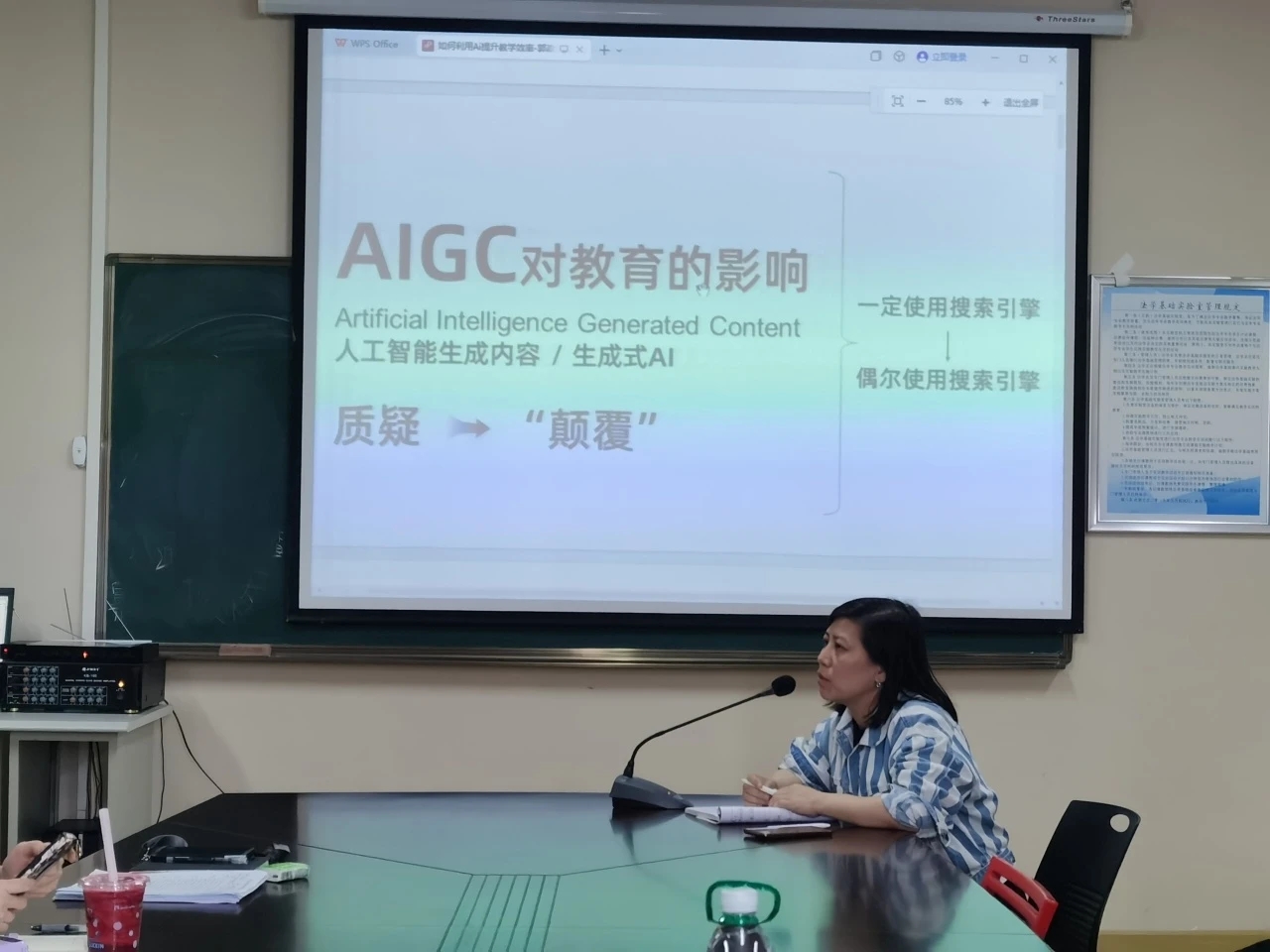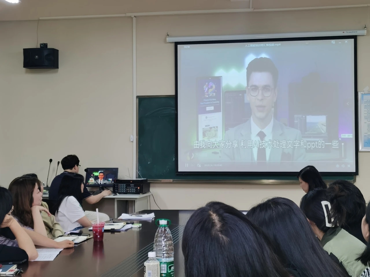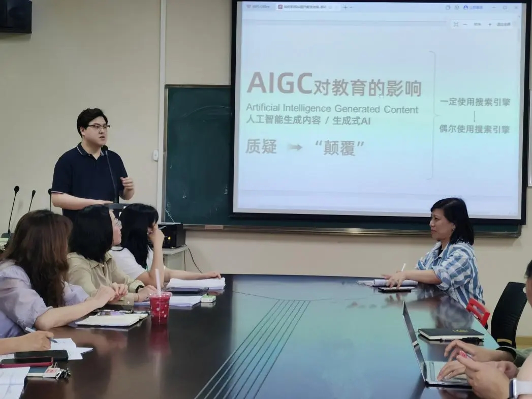 吕溪老师表示,现有人工智能模型多样,不同版本对应的权限和功能各不相同。简要介绍各大模型的区别和使用方法后,吕溪老师为大家展示其事前录制的人工智能数据模型在教案编写、数字人教学等场景的应用成果,内容生动,操作具体,人工智能应用于教学工作的利弊一目了然。